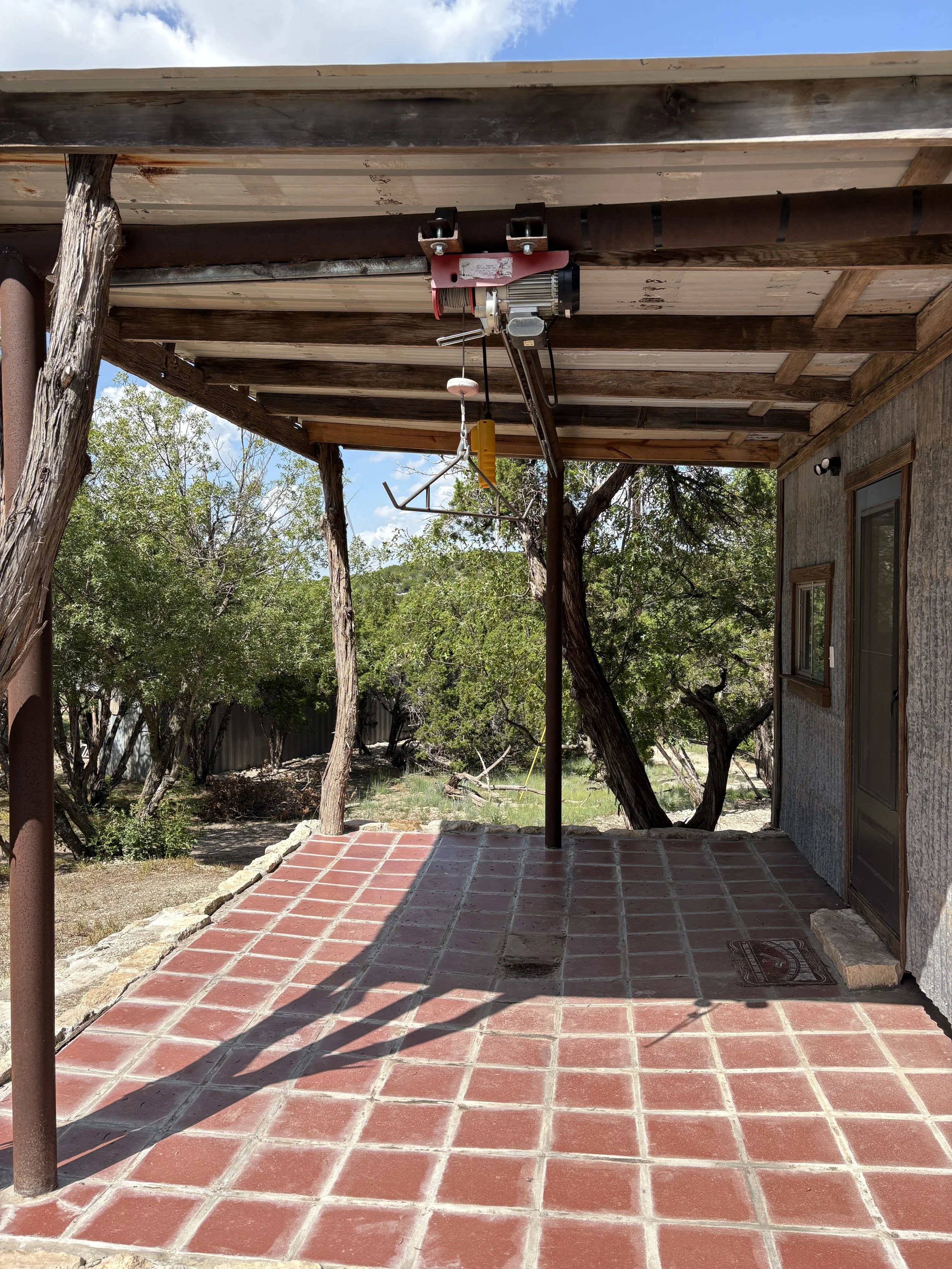 Hangout under the canopy with the Mulberry Canyon view. Lodging includes kitchen, bathroom, pool table and wifi. Sleeps six hunters.